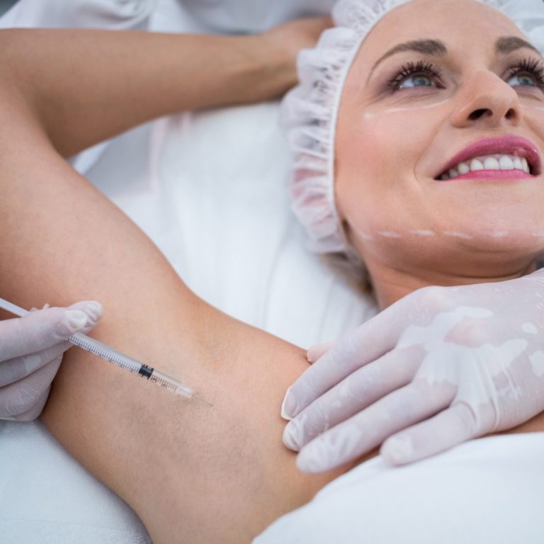 Durch Botulinumtoxin A (Botox) kann die übermäßige Schweißabsonderung im Bereich der Achselhöhle gestoppt werden.